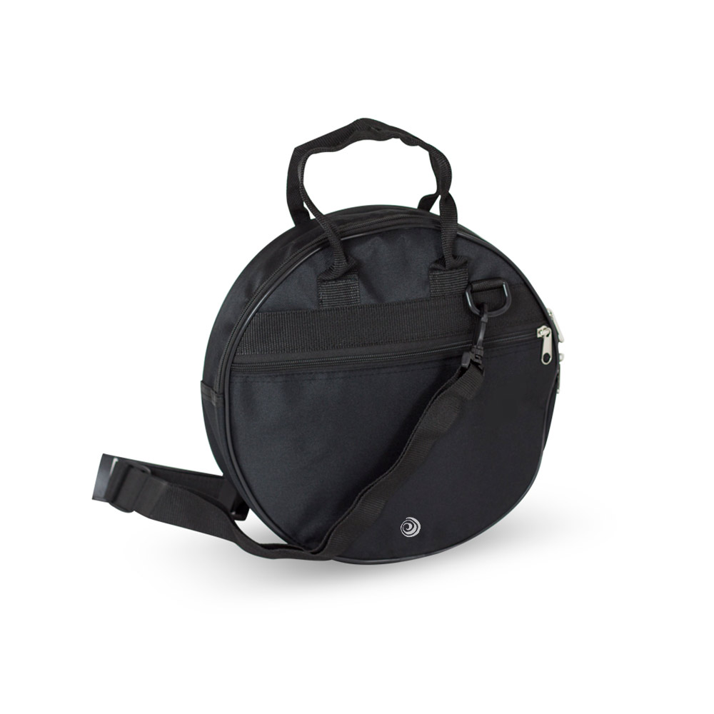 Fundas para pandeiro fabricadas en poliéster plastificado, acolchado de 10 mm de polietileno y forro de poliéster negro. Bandolera, bolsillo y asas de cinta de nylon.